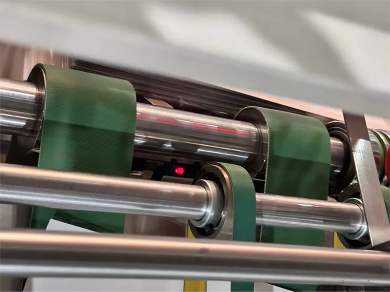 Ηλεκτρικό μάτι επαγωγής, ανιχνεύοντας το μήκος του χαρτιού, εάν αλλάξει το μήκος του χαρτιού, ο ιμάντας θα επιταχυνθεί και το διάφραγμα της μηχανής τύλιξης θα ανατραπεί και θα εκτοξεύσει το χαρτί.
